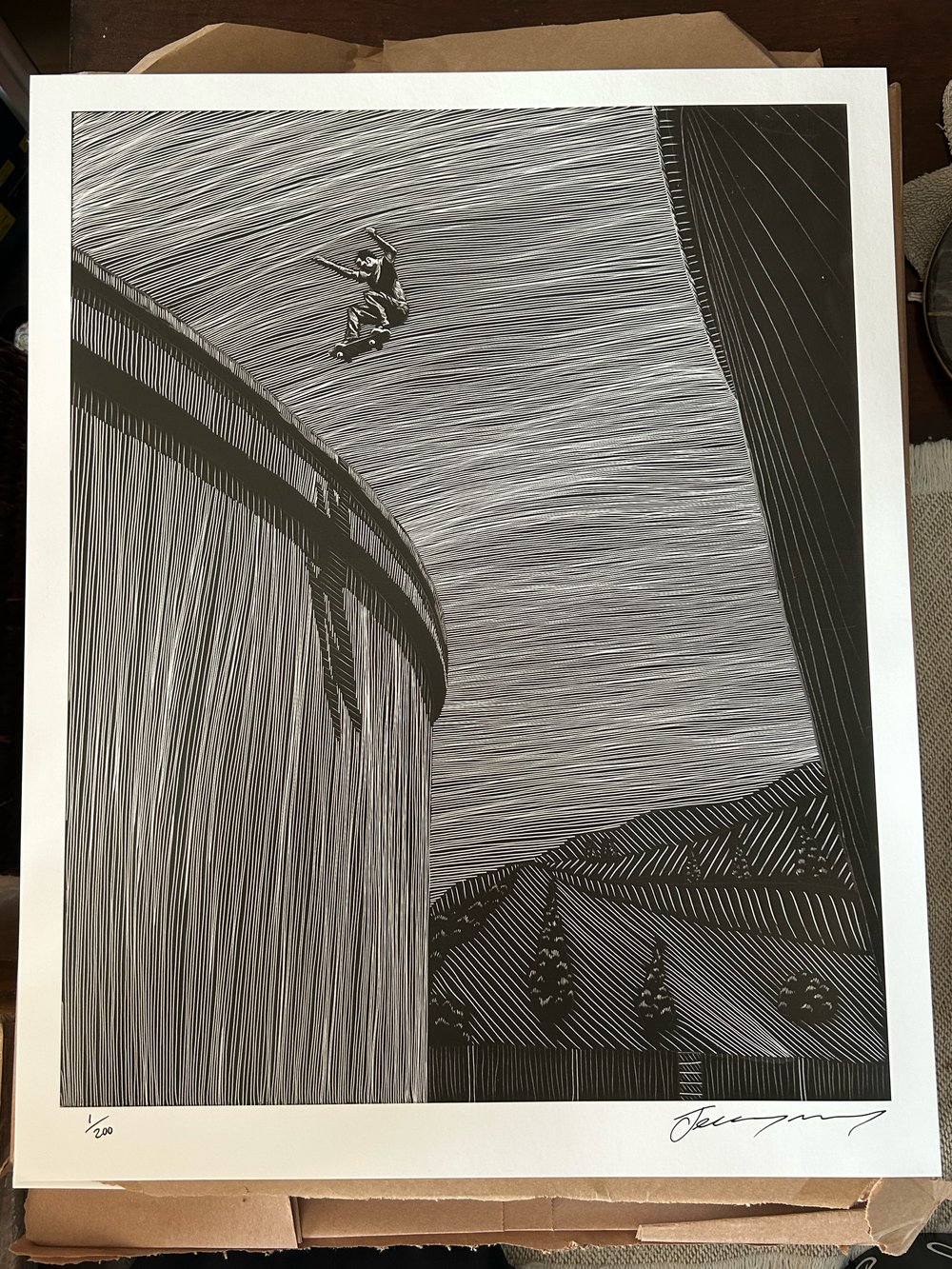For everyone that requested a fine art print of my scratchboard version of the infamous Water Tower Ollie, well today is your lucky day! I was able to get 200 of them produced on 80 lb stock and hand signed and numbered them for you. The print measures 16"x 20" and will fit nicely into the frame of your choice 👌🏼! Get yours now or gift one to the skateboarder in your life for the holidays. Either way it's a win win 🏆!